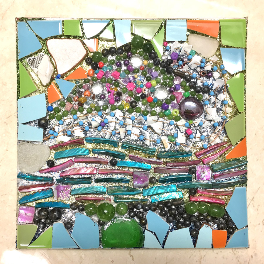 This square mosaic is 12 x 12 inch’s (300mm). An autumn landscape! It can be purchased directly from this website but we recommend you arrange collection from our studio.