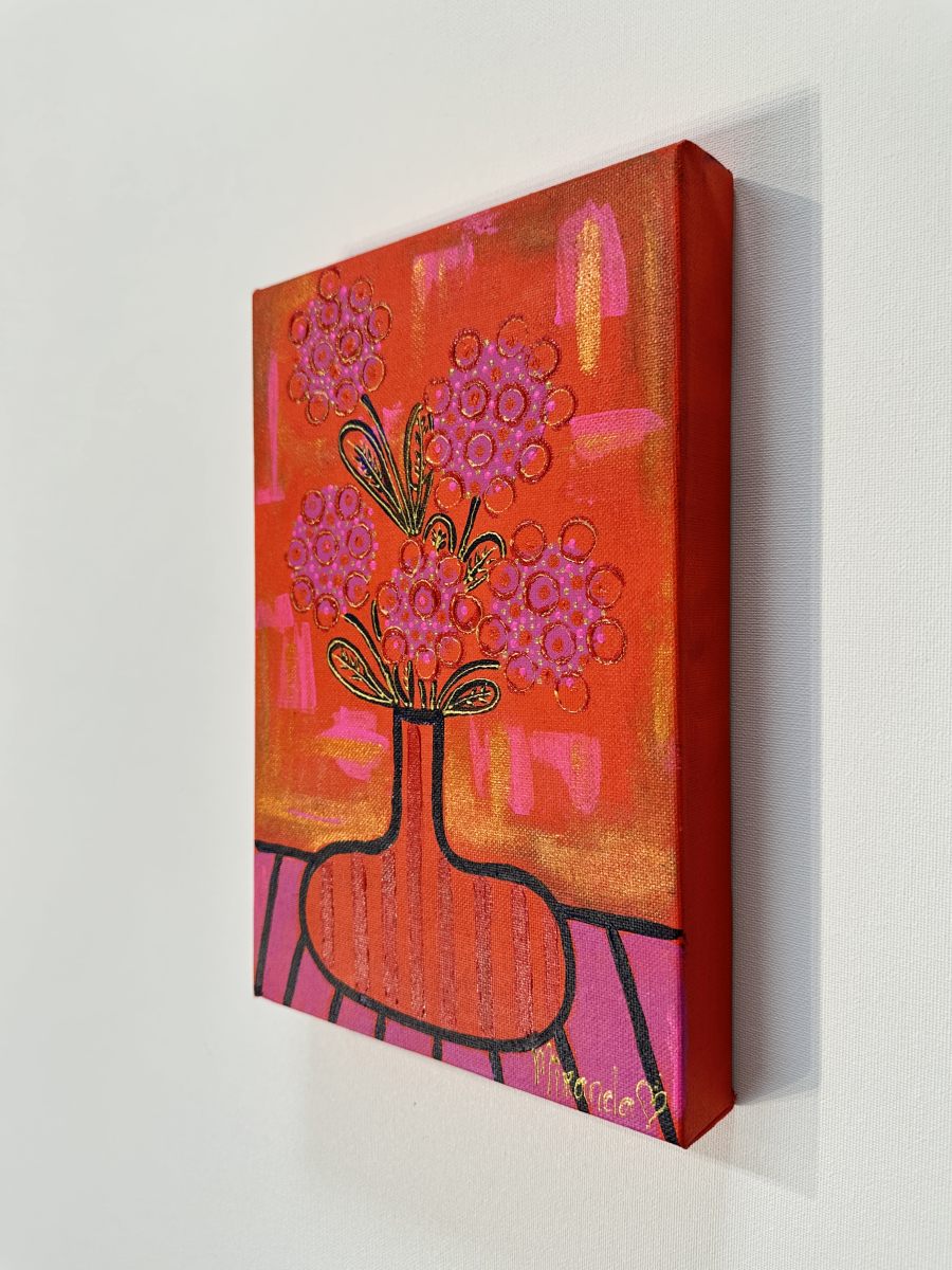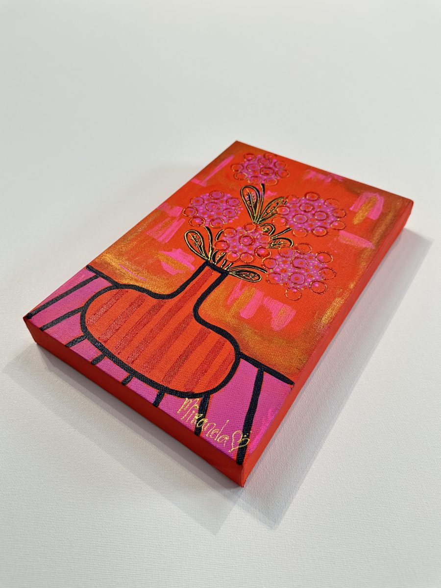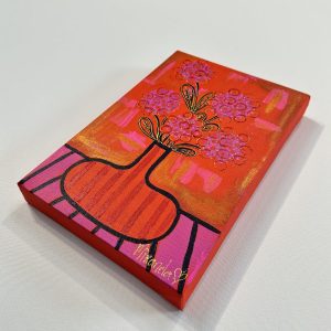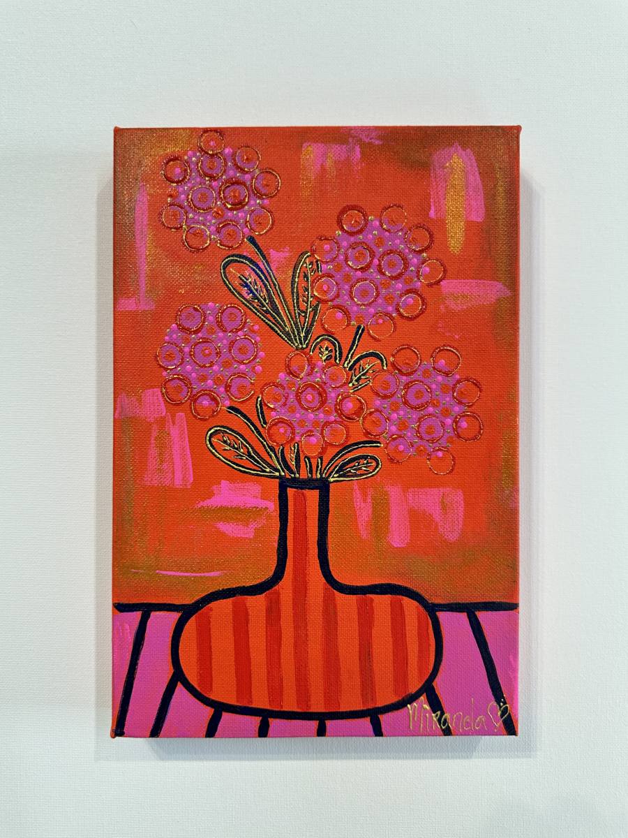 This floral painting by Miranda Corcoran is painted on canvas using vibrant acrylic paints. It measures 12 x 8 inches (305 mm x 205 mm). The cotton canvas is stretched on a deep wooden frame with a thickness of 1.5 inches (35 mm).