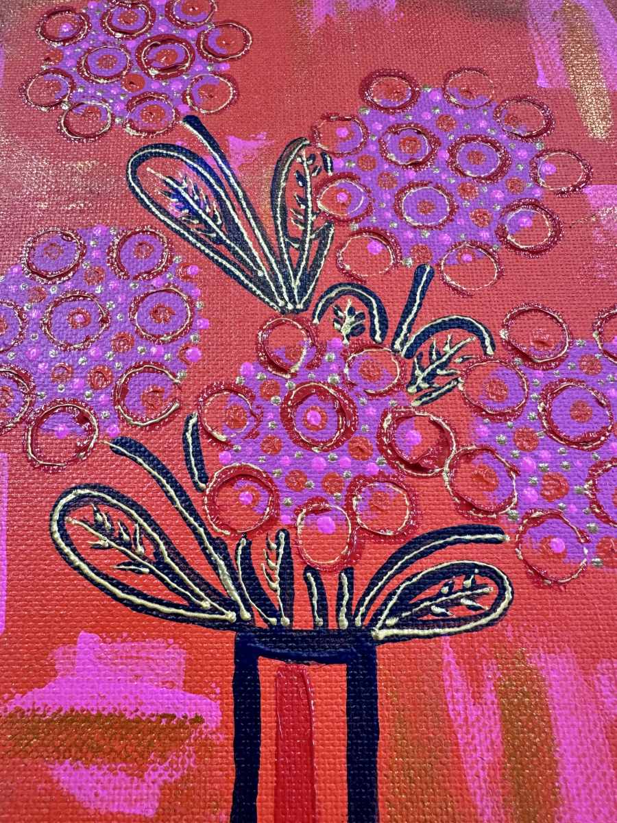 This is a one-off original painting. It’s part of her ‘Flower Burst’ series, painted in her studio at The Art Hand in Ireland.