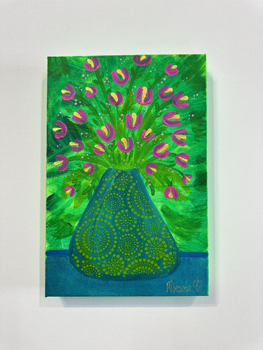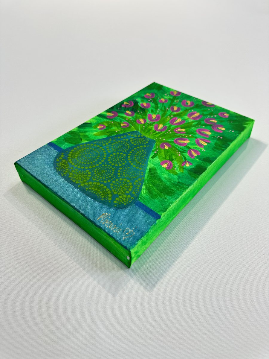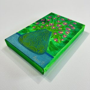 This floral painting by Miranda Corcoran is painted on canvas using vibrant acrylic paints. It measures 12 x 8 inches (305 mm x 205 mm). The cotton canvas is stretched on a deep wooden frame with a thickness of 1.5 inches (35 mm).