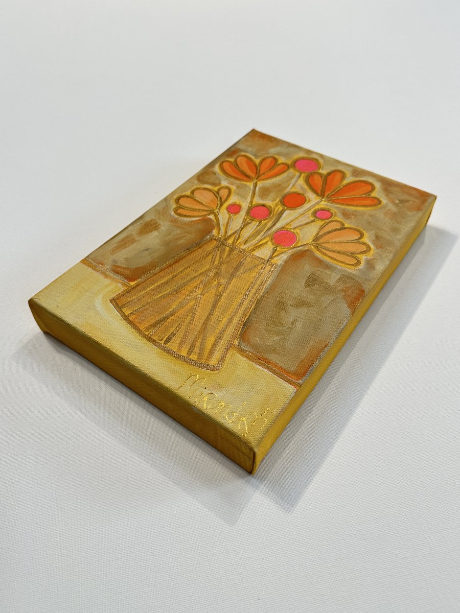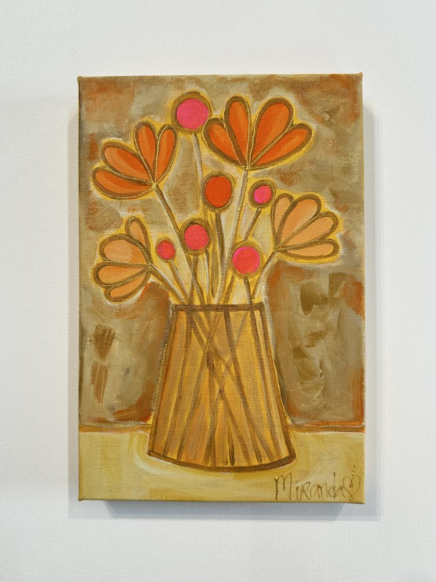 This floral painting by Miranda Corcoran is painted on canvas using vibrant acrylic paints. It measures 12 x 8 inches (305 mm x 205 mm). The cotton canvas is stretched on a deep wooden frame with a thickness of 1.5 inches (35 mm).