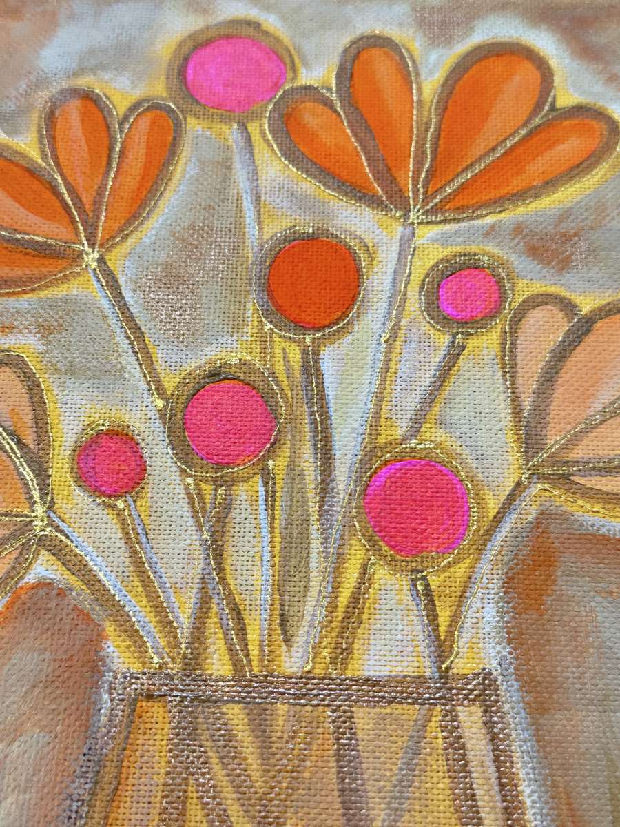 This is a one-off original painting. It’s part of her ‘Flower Burst’ series, painted in her studio at The Art Hand in Ireland.